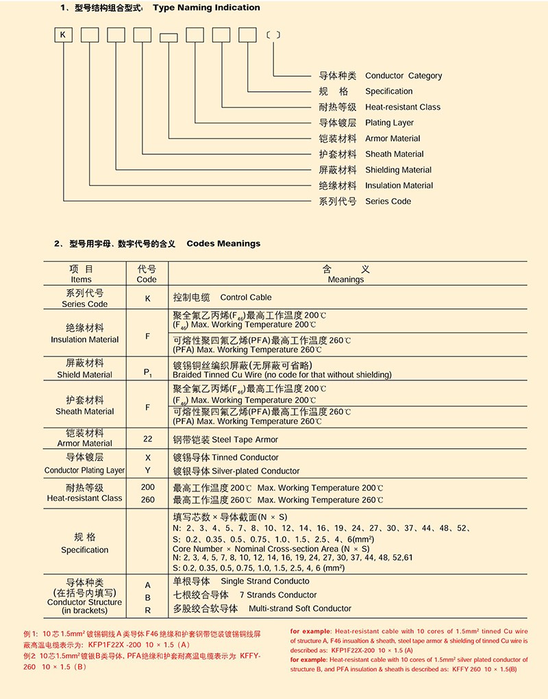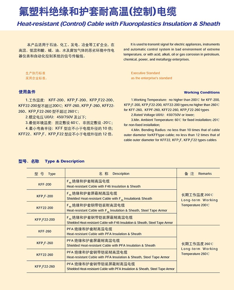 氟塑料絕緣和護套耐高溫(控制)電纜