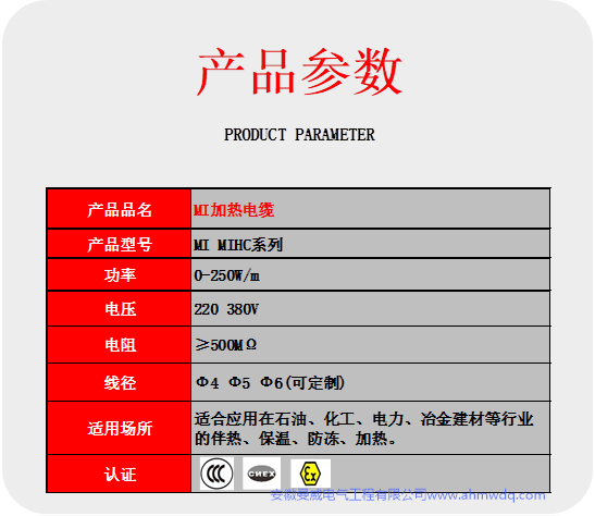 加熱***高溫度低于250℃的加熱電纜執(zhí)行IEC800(92)標(biāo)準(zhǔn),《額定電壓300/500V生活設(shè)施加熱和防結(jié)冰用加熱電纜》,超過(guò)250℃的加熱電纜執(zhí)行企業(yè)標(biāo)準(zhǔn)。