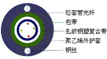 產品型號: GYXTW 中芯松套管光纖 纜芯填充油膏 軋紋鋼帶粘結PE護套 夾帶雙平行鋼絲PE護套 | |||